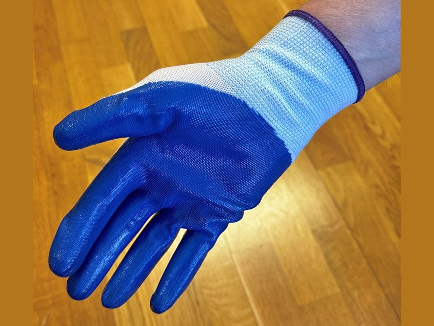 Enkle billige hansker, egner seg godt til detektering. Beskytt hendene dine. Blått vanntett "belegg" under.