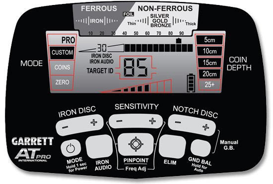 Garrett AT Pro er full av tekniske finesser og innovative egenskaper. Den er meget enkel og ta i bruk, lære, og forstå. Displayets knapper er selvforklarende, og det tar ikke lang tid før du kjenner denne detektoren.