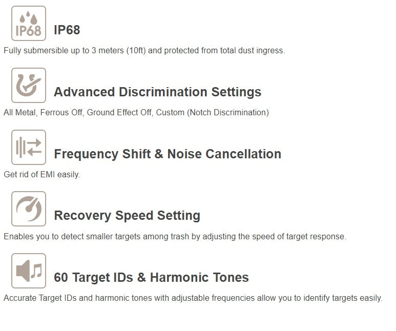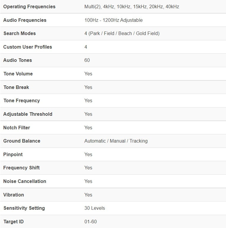 Denne vanntette multifrekvens detektoren har ytelse, egenskaper og design som plasserer den helt der oppe i toppskiktet. Det er en proffklasse detektor - men er samtidig så enkel å lære at den passer for nybegynnere som vil starte med en skikkelig kvalitetsdetektor.