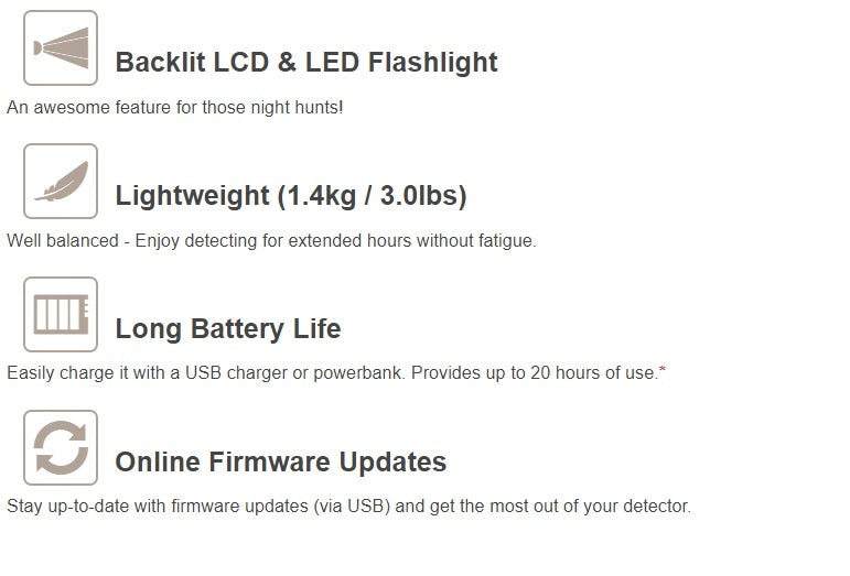 Hold deg up-to-date med firmware oppdateringer via USB. Få det meste ut av din detektor. -